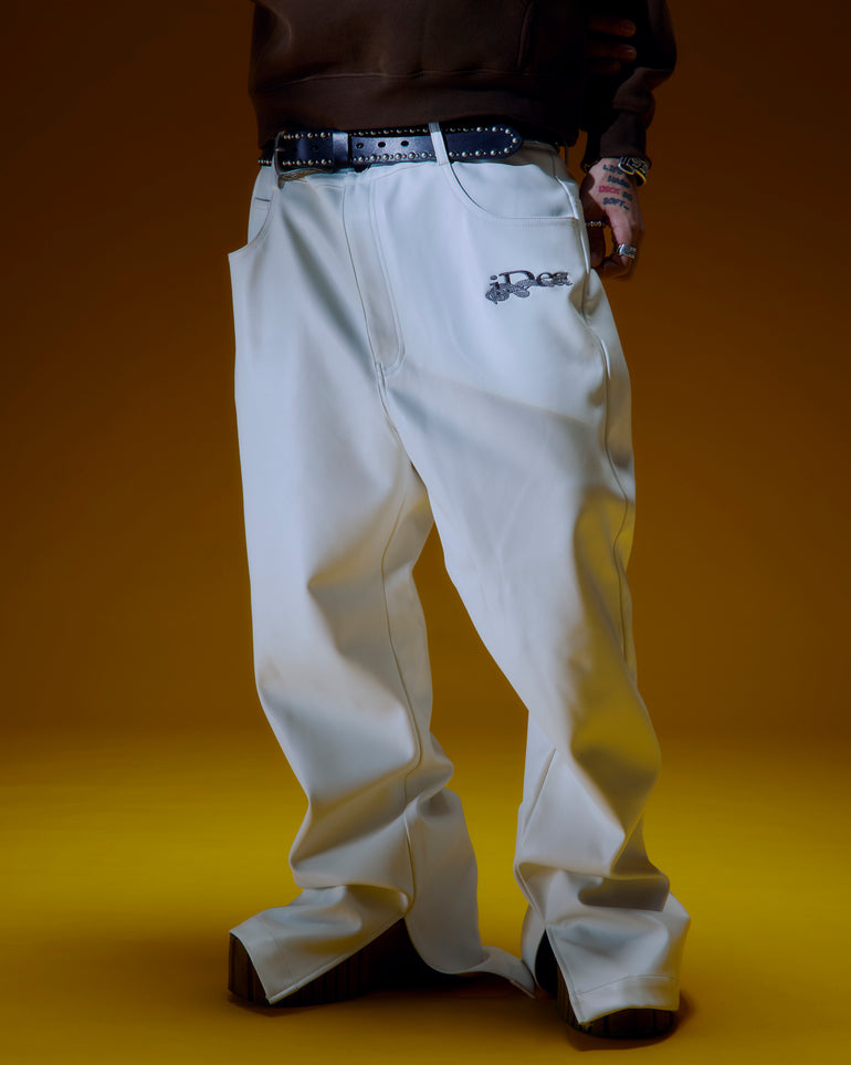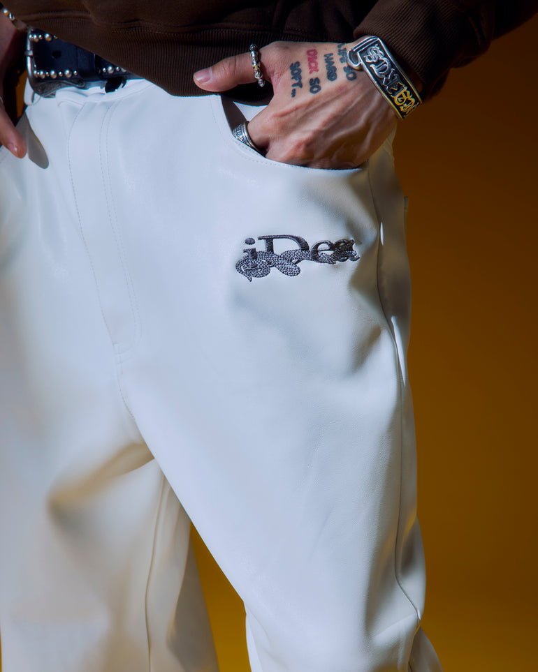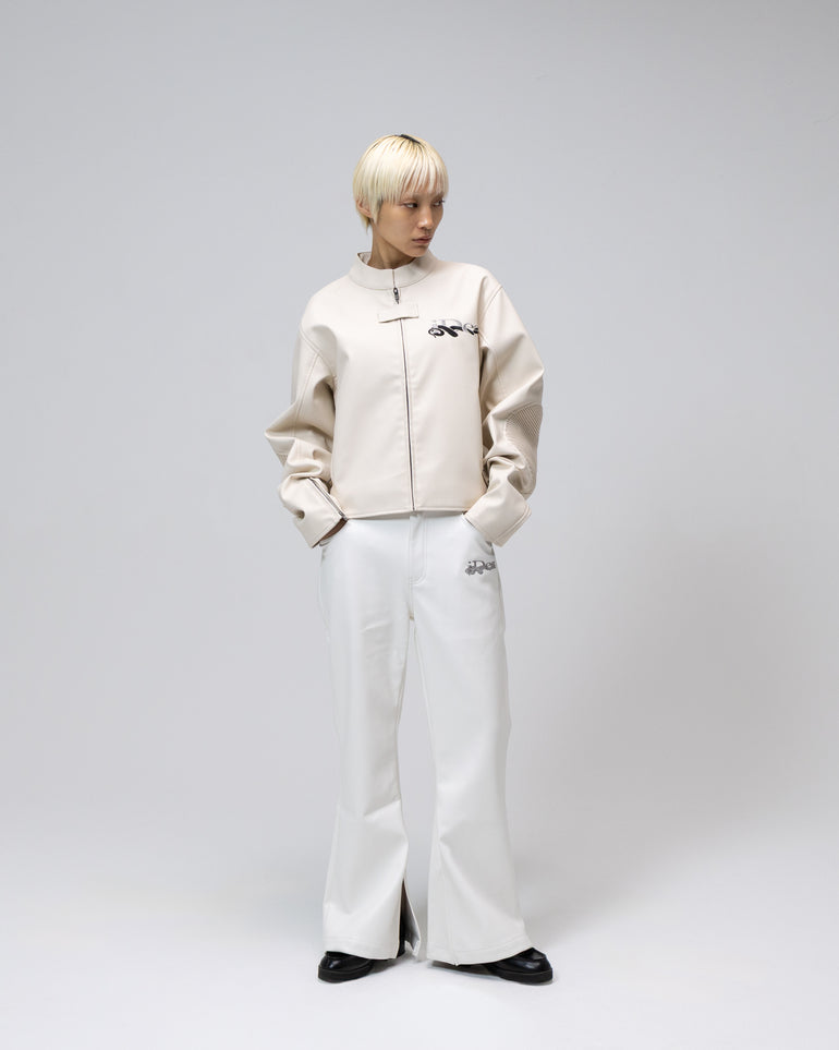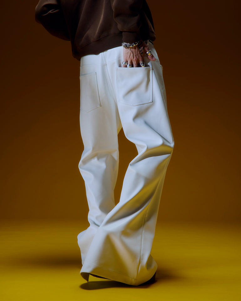 OUROBOROS LEATHER FLARE PANTS (White)